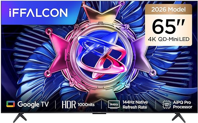 Bu TV, TCL alt markası olan iFFALCON’un 2026 QD-Mini LED serisinin üst seviye modeli. Samsung’un NEO QLED teknolojisine benzer bir yapıya sahip. Mini LED’lerin sağladığı yüksek parlaklık + Quantum Dot’un canlı renkleri bir arada. Özellikle parlak odalarda güçlü performans, 144 Hz + VRR ile akıcı oyun deneyimi ve ONKYO imzalı Dolby Atmos sesiyle öne çıkıyor.